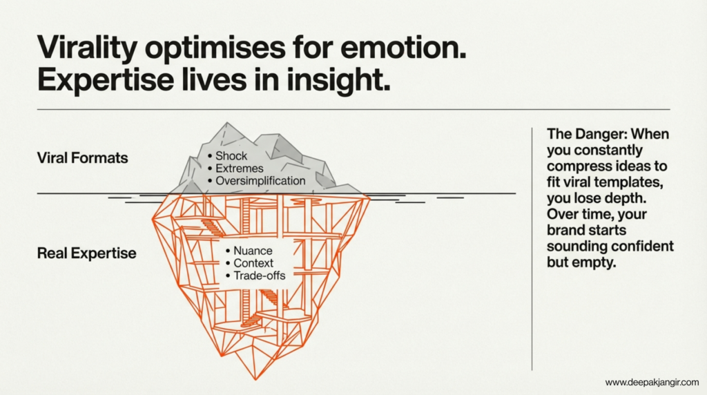 When you constantly compress ideas to fit viral templates, you lose depth.
